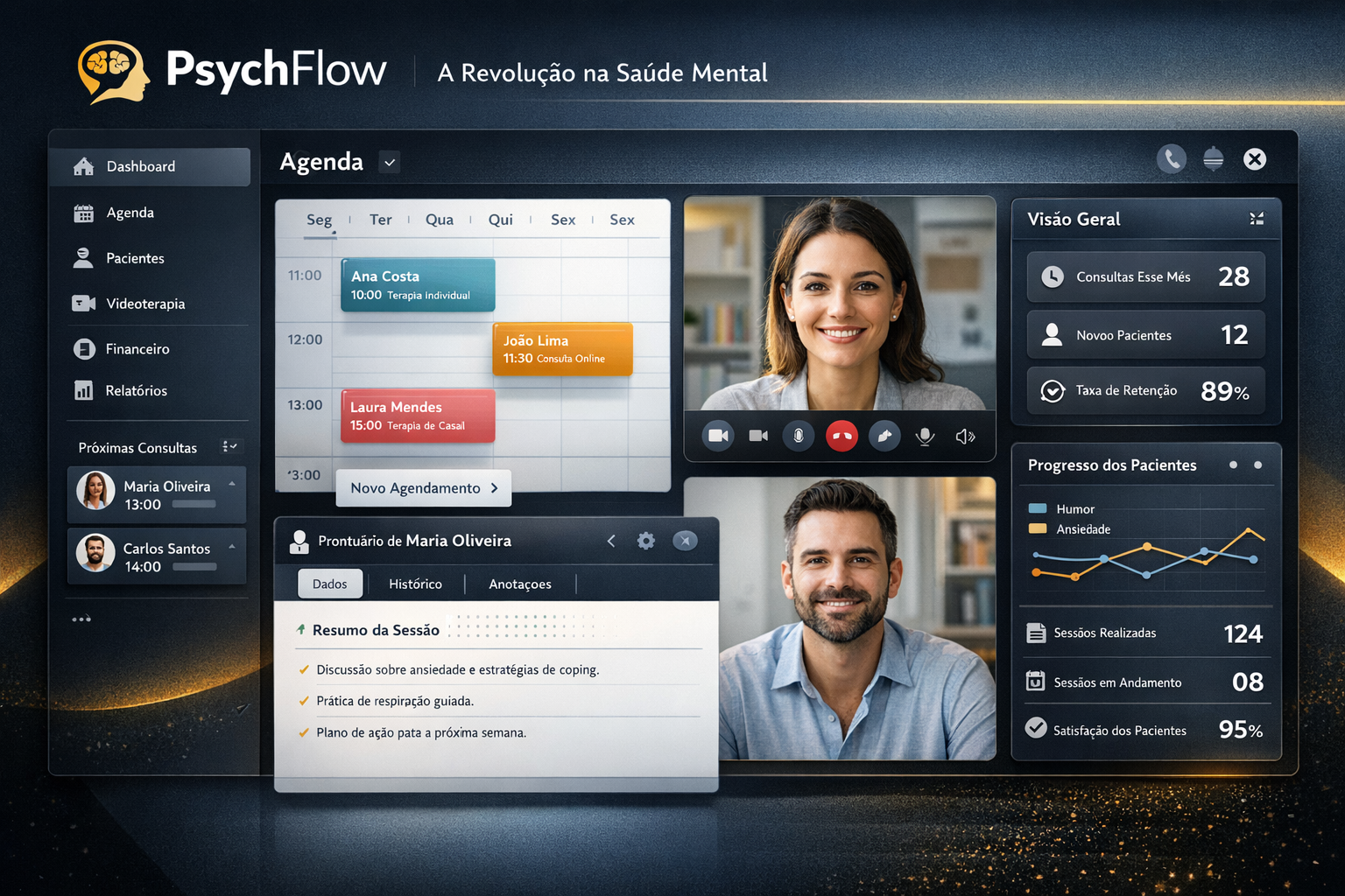 A revolução na saúde mental. IA humanizada para agendamentos de precisão e conexão imediata via metodologia em vídeo. Reduza a fricção burocrática e foque no que realmente importa: o acolhimento e o sucesso do paciente.